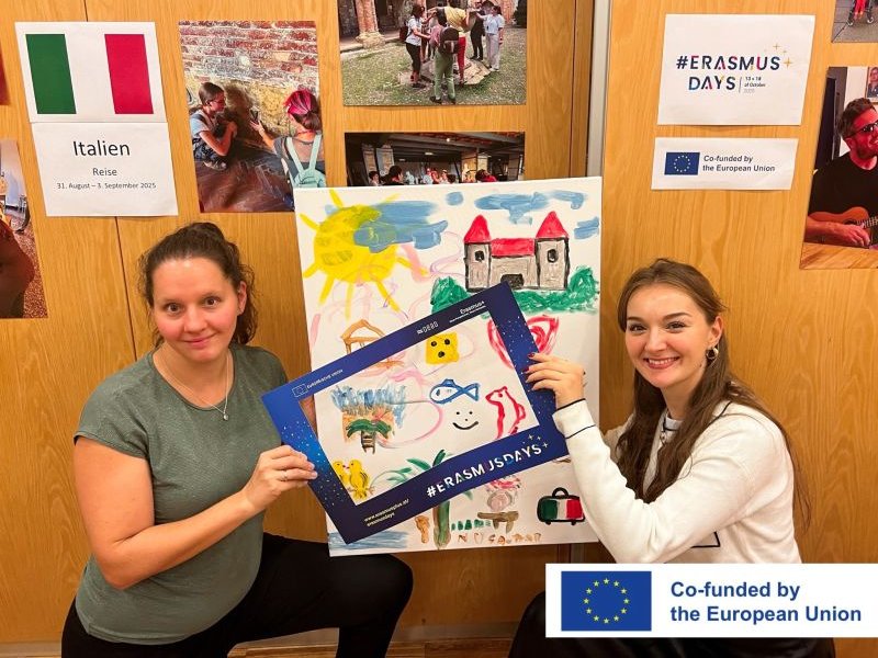 Ob aktuelle Projekte vorgestellt, persönliche Erfahrungen geteilt oder neue Teilnehmende inspiriert wurden – jede Aktion zählte! Die #ErasmusDays boten eine Bühne für gelebte europäische Zusammenarbeit, interkulturellen Austausch und Engagement: Im Zuge der #ErasmusDays organisierte die Hilfsgemeinschaft vom 13. bis 18. Oktober 2025 in unserem Standort Jägerstraße eine Fotoausstellung zu vergangenen und zukünftigen Erasmus Bildungsreisen. Lesegeräte zur Vergrößerung der Fotos standen bereit und auch Informationen in Braille lagen auf.
